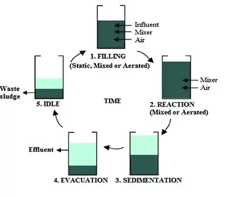 Công nghệ xử lý nước thải SBR vận hành theo chu trình 5 giai đoạn lặp lại liên tục: